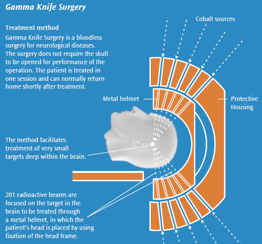 There are almost no initial effects of radiosurgery. Local pain in the scalp responds to simple, oral pain medication. Long range effects after many months include swelling within the adjacent brain, which may cause symptoms such as headache and neurological disturbances. Almost always this swelling is treated with oral steroids and is self-limiting. Permanent cranial nerve